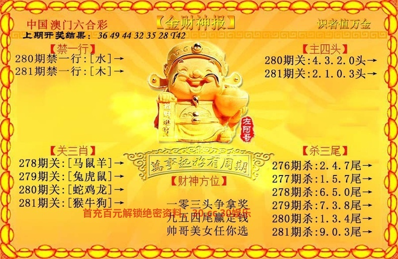 286期:发财五尾【$.$.$.$.$】开:發00中