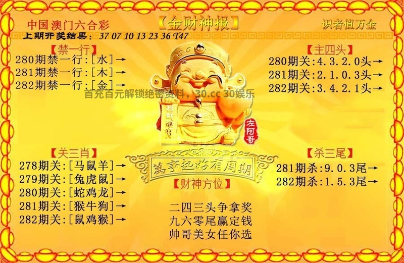 285期:七肖【猪兔猴虎狗牛龙】开:發00中